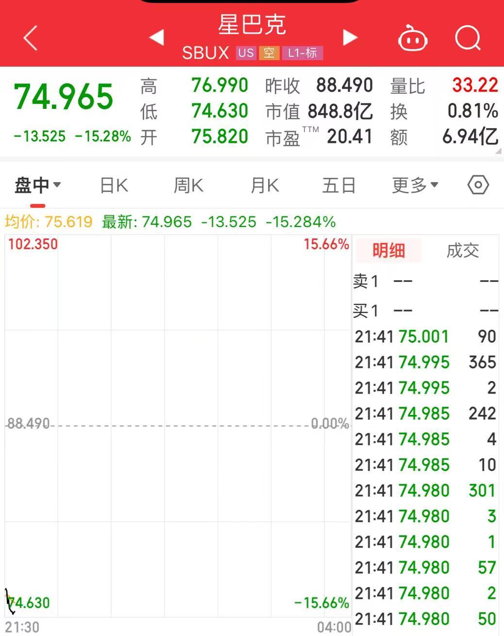 值得注意的是,星巴克一度跌超15%,创2020年3月以来最大跌幅。